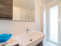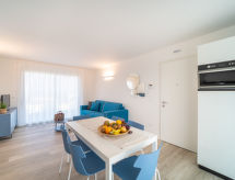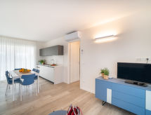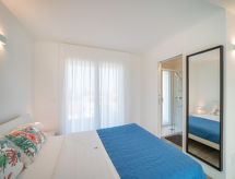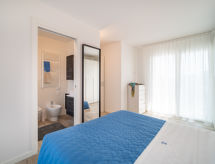 3-pokojowe mieszkanie 50 m2. Nowoczesne umeblowanie: salon/sypialnia z 1 dwuosobową kanapą, stołem i TV (satelitarna). Wyjście na balkon. 1 pokój 2-osobowy z prysznicem/bidetem/WC. 1 pokój z 1 łóżkiem i 1 łóżkiem opuszczanym z szafy. Kącik kuchenny (zmywarka do naczyń, 4 płyta indukcyjna, kuchenka mikrofalowa, ekspres do kawy). Prysznic/bidet/WC. Klimatyzacja, ogrzewanie ciepłym powietrzem. Balkon. Meble balkonowe. Do dyspozycji: sejf, łóżko dla dziecka do 2 lat (extra), suszarka do włosów. Internet (bezprzewodowy LAN [WLAN], gratis). Miejsce parkingowe (1 samochód).- udogodnienia