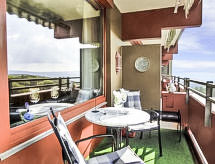 "A805", 1-rums-lägenhet 38 m2 på 8. våningen, västläge. Komfortabelt och stiligt inredd: vardags-/matrum med sat-TV (flatscreen TV), radio. Utgång till balkongen. Sovalkov med 2 sängar (90 cm, längd 195 cm). Kokvrå vid ingången (ugn, 4 kokplattor - glaskeramikhäll, brödrost, vattenkokare, elektrisk kaffemaskin). Dusch/toalett. Balkongmöbler. Härlig utsikt på landskapet. Till förfogande: Internet (Trådlös LAN [WLAN] , gratis). Notera: rökfri lägenhet. Brandvarnare.- Utrustning