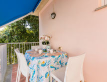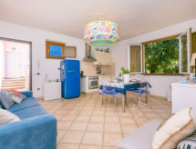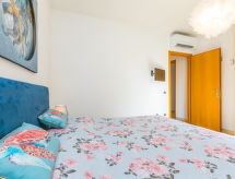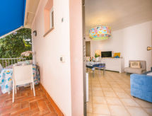"Adduci", 2-rums-lägenhet 54 m2 på 1. våningen. Rymlig och ljus, komfortabelt och vackert inredd: vardags-/sovrum med 1 bäddsoffa för 2 personer, matbord och digital-TV. Utgång till terrassen. 1 dubbelrum med digital-TV. Öppet kök (diskmaskin, 4 Induktionshäll, brödrost, vattenkokare). Dusch/bidé/toalett. Eluppvärmning, luftkonditionering (extra). Liten balkong 6 m2. Balkongmöbler. Till förfogande: tvättmaskin, hög barnstol, barnsäng för barn under 2 år, hårtork. Internet (Trådlös LAN [WLAN] , gratis). Notera: 1 husdjur/hund tillåtet. Ingen hiss.- Kännetecken för boendet