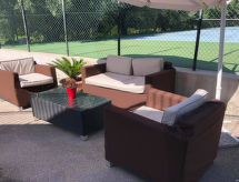 4-rums-villa 160 m2. Komfortabelt och smakfullt inredd: vardags-/matrum med 1 bäddsoffa för 2 personer och sat-TV (flatscreen TV). 1 dubbelrum med dusch/bidé/toalett och TV (flatscreen TV), luftkonditionering. 2 dubbelrum, till varje rum hör, TV (flatscreen TV), luftkonditionering. Kök (5 kokplattor, ugn, diskmaskin, mikrovågsugn, frys). Dusch/bidé/toalett. Vilstolar. Utsikt på swimming-poolen, trädgården och landskapet. Till förfogande: tvättmaskin, strykjärn, hög barnstol, barnsäng för barn under 2 år, hårtork. Internet (Trådlös LAN [WLAN] , gratis). Parkeringsplats (2 Bilar).- Utrustning