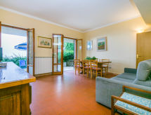 "Agrifoglio", 3-rums-lägenhet 65 m2, på bottenvåningen. Enkelt och praktiskt inredd: matrum med sat-TV. Utgång till terrassen. 1 dubbelrum. 1 dubbelrum. Kokvrå (4 kokplattor, miniugn, vattenkokare, frys). 2 duschar/bidéer/toaletter. Terrass, 20 m2. Terrassmöbler. Panoramautsikt på landskapet. Till förfogande: hög barnstol, barnsäng för barn under 2 år. Internet (Trådlös LAN [WLAN] , gratis). 1 husdjur/hund tillåtet.- Kännetecken för boendet