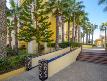 "Aldea del Mar", 3-rums-lägenhet 60 m2 på 3. våningen. Praktiskt och komfortabelt inredd: vardags-/matrum med digital-TV, flatscreen TV, luftkonditionering och varmluftsuppvärmning. Utgång till balkongen. 1 rum med 1 dubbelsäng (180 cm, längd 200 cm), luftkonditionering och varmluftsuppvärmning. 1 rum med 2 sängar (80 cm, längd 190 cm), luftkonditionering och varmluftsuppvärmning. Öppet kök (ugn, 4 kokplattor - glaskeramikhäll, brödrost, mikrovågsugn, frys, elektrisk kaffemaskin). Badkar/toalett. Eluppvärmning. Liten terrass. Utsikt på orten och staden. Till förfogande: tvättmaskin, strykjärn, hårtork. Internet (Trådlös LAN [WLAN] , gratis). Notera: rökfritt hus. Max 1 litet husdjur/hund tillåtet. VT-464805-A- Utrustning