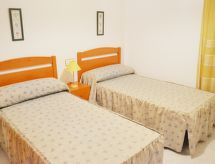 "Aldea Park", 4-rums-lägenhet 88 m2. Komfortabelt och mysigt inredd: vardags-/matrum med matbord och digital-TV. Utgång till balkongen. 1 rum med 1 fransk säng (135 cm). 2 rum, till varje rum hör 2 sängar (90 cm). Öppet kök (ugn, 4 kokplattor - glaskeramikhäll, brödrost, vattenkokare, mikrovågsugn, elektrisk kaffemaskin). Badkar/bidé/toalett. Ingen uppvärmningsmöjlighet. Balkong. Balkongmöbler. Utsikt på swimming-poolen. Till förfogande: tvättmaskin, strykjärn, hårtork. Notera: ingen hiss. HUTTE040350- Utrustning