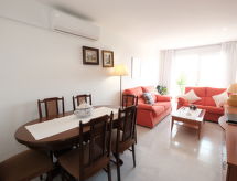 Aldea Verde: Mysigt flerfamiljshus "Aldea Verde". I utkanten, 500 m från centrumet av Sant Carles de la Rapita, 300 m från havet, 300 m från stranden. För gemensamt bruk: pool (10 x 5 m, tillgång säsongsbunden: 01.Apr. - 30.Sep.). Utedusch. I huset: tvättmaskin. Gemensamt garage nr 3. Affär, livsmedelsaffär 100 m, stormarknad 200 m, köpcentrum, restaurang 100 m, bar 300 m, bageri 200 m, café 100 m, område endast för gående 10 m, cykeluthyrning 1 km, …minuts promenad till centrum 15, spårvagn "Amposta" 12 km, busshållplats "Hife Les Delicies" 50 m, sandstrand "Playa Les Delicies" 300 m. Sporthamn, marina 800 m, golfbana (18 hål) 30 km, surfskola, seglarskola, tennis, sportcentrum 800 m. Närbelägna sevärdheter: Parque Natural del Delta de l'Ebre 15 km, Peñiscola 50 km, Port Aventura Salou 100 km, Les Salinas 20 km, Vinaroz 20 km. Vandringsområden La Foradada 2 km.Interior