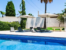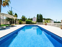 Los Bancales Benissa: Mycket vackert, mysigt, komfortabelt hus "Alina", med 2 våningar. I ortsdelen Benissa 8 km från centrumet av Moraira, 8 km från centrumet av Calpe, avskilt, lugnt, soligt läge, 1.5 km från havet, 1.5 km från stranden, i en återvändsgränd. För privat bruk: stor, vacker, välskött trädgård 910 m2 (inhägnad) med gräsmatta och träd, pool kantig (4 x 10 m, 140 - 220 cm djup, tillgång säsongsbunden: 01.Jan. - 31.Dec.) med innertrappor. Utedusch, terrass, trädgårdsmöbler. I huset: internetanslutning, Trådlös LAN [WLAN], tvättmaskin. Parkering (för 3 bilar, täckt) på tomten. Carport. Stormarknad 1.5 km, restaurang 1.5 km, sandstrand 5 km, badvik 1.5 km. Golfbana (9 hål) 8 km. Notera: fordon rekommenderas. Lämplig för barnfamiljer, passande för äldre.Interior