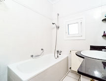 "Alina", 5-rums-hus 190 m2. Komfortabelt och smakfullt inrett: vardags-/matrum med sat-TV, internationella TV-kanaler, flatscreen TV och luftkonditionering. Utgång till terrassen. 2 rum, till varje rum hör, 1 fransk säng (160 cm, längd 200 cm). Öppet kök (ugn, diskmaskin, 4 kokplattor - glaskeramikhäll, mikrovågsugn, frys, elektrisk kaffemaskin, Kapslar till kaffemaskin (Dolce Gusto)). Dusch/toalett. Gasuppvärmning. Övre våning: litet vardagsrum med 1 bäddsoffa för 2 personer (150 cm, längd 200 cm), sat-TV. 1 dubbelrum med 2 sängar (210 cm, längd 200 cm), luftkonditionering. Badkar/toalett. Stor terrass täckt, sydvästläge, stor terrass, trädgårdssittplats, sydvästläge. Terrassmöbler, utegrill, vilstolar. Vacker utsikt på havet. Till förfogande: tvättmaskin, strykjärn, myggnät. Internet (Trådlös LAN [WLAN] , gratis). Parkeringsplats (täckt, inhägnad, 3 Bilar). Notera: lämpligt för barnfamiljer. TV bara DE, FR, ES. AT-451761-A- Aktiviteter i närheten