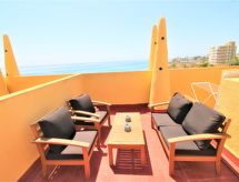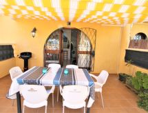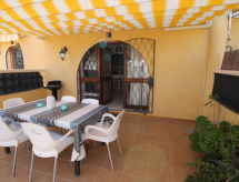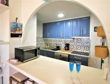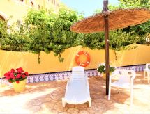 "Alkabir playa", 4-rums-radhus 85 m2 med 4 våningar. Objekt passande för 6 vuxna. Praktiskt och komfortabelt inrett: vardags-/matrum 19 m2 med digital-TV och luftkonditionering. Utgång till terrassen. Öppet kök (diskmaskin, 3 kokplattor - glaskeramikhäll, mikrovågsugn, frys, elektrisk kaffemaskin). Luftkonditionering. Övre våning: 1 rum 7 m2 med 2 sängar (90 cm, längd 190 cm). 1 rum 7 m2 med 2 sängar (80 cm, längd 190 cm), fläkt. Badkar/toalett. 2:a våningen 1 rum 8 m2 med 1 fransk säng (140 cm, längd 200 cm), luftkonditionering. Badkar/toalett. Utgång till terrassen. Stor terrass 20 m2. Terrassmöbler. Vidsträckt utsikt på havet och landskapet. Till förfogande: tvättmaskin, torktumlare, strykjärn. Internet (Trådlös LAN [WLAN] , gratis). VT-490929-A- Utrustning