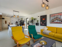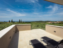 4-rums-villa 150 m2 med 2 våningar. Vackert inredd: vardags-/matrum med TV och luftkonditionering. Utgång till terrassen. 1 rum med 1 fransk säng (160 cm, längd 200 cm), luftkonditionering. Utgång till terrassen. 1 rum med 1 fransk säng (160 cm, längd 200 cm). Utgång till terrassen. Öppet kök (ugn, diskmaskin, 4 Induktionshäll, brödrost, vattenkokare, mikrovågsugn, frys, elektrisk kaffemaskin). Sep. Toalett, badkar/dusch/toalett. Övre våning: 1 rum med 1 fransk säng (160 cm, längd 200 cm), TV och luftkonditionering. Utgång till terrassen. Dusch/toalett. Uppvärmning, varmluftsuppvärmning. Terrass 45 m2, terrass 55 m2. Terrassmöbler, utegrill (flyttbar), vilstolar (6). Utsikt på landskapet. Till förfogande: kassaskåp, strykjärn, myggnät, hög barnstol, barnsäng, hårtork. Internet (Trådlös LAN [WLAN] , gratis). Notera: rökfritt hus. Brandsläckare.- Utrustning