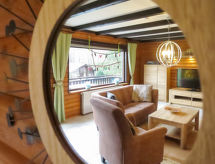 3-rums-lägenhet 75 m2, på övervåningen. Vackert och mysigt inredd: vardagsrum med sat-TV (flatscreen TV). Utgång till balkongen. 1 dubbelrum. 1 rum med 2 sängar. Öppet kök (4 kokplattor, ugn, diskmaskin, brödrost, vattenkokare, mikrovågsugn, elektrisk kaffemaskin) med matbord. Badkar/toalett. Gasuppvärmning. Balkong 10 m2, sydläge, terrass 10 m2 täckt. Terrassmöbler, balkongmöbler, utegrill (flyttbar), vilstolar (2). Vacker utsikt på bergen. Till förfogande: Internet (Trådlös LAN [WLAN] , gratis). Notera: rökfri lägenhet. Max 2 husdjur/hundar tillåtna. Privat entré, privat entré, brandvarnare.- Utrustning