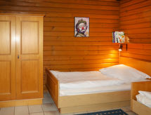 3-rums-lägenhet 75 m2, på övervåningen. Mysigt och med mycket trä inredd: vardagsrum 35 m2 med sat-TV (flatscreen TV). Utgång till balkongen. 1 rum 13 m2 med 1 dubbelsäng (180 cm, längd 200 cm). 1 rum 9 m2 med 2 sängar (90 cm, längd 200 cm). Öppet kök 9 m2 (4 kokplattor, ugn, diskmaskin, vattenkokare, elektrisk kaffemaskin, kombinerad mikrovågsugn) med matbord. Dusch/toalett. Gasuppvärmning. Stor balkong 20 m2, sydläge. Balkongmöbler. Vacker utsikt på bergen. Till förfogande: hårtork. Internet (Trådlös LAN [WLAN] , gratis). Notera: rökfri lägenhet. Privat entré, privat entré, brandvarnare, brandsläckare. Balkong delvis täckt. Sjö 150 m.- Utrustning