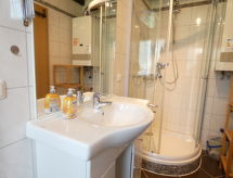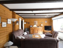 3-rums-lägenhet 75 m2, på övervåningen. Mysigt och med mycket trä inredd: vardagsrum 35 m2 med sat-TV (flatscreen TV), stereoanläggning, DVD och DVD-samling tillgänglig. Utgång till balkongen. 1 rum 13 m2 med 1 dubbelsäng (180 cm, längd 200 cm). 1 rum 9 m2 med 2 sängar (100 cm, längd 200 cm). Öppet kök 9 m2 (4 kokplattor, ugn, diskmaskin, vattenkokare, elektrisk kaffemaskin) med matvrå. Dusch/toalett. Gasuppvärmning. Stor balkong 20 m2. Balkongmöbler. Vacker utsikt på bergen. Till förfogande: strykjärn, hög barnstol, hårtork. Internet (Trådlös LAN [WLAN] , gratis). Blu-ray-spelare. Notera: rökfri lägenhet. Privat entré, privat entré, brandvarnare.- Utrustning
