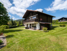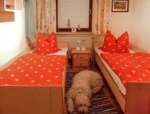 3-rums-lägenhet 75 m2, på bottenvåningen. Mysigt inredd: vardagsrum 35 m2 med sat-TV (flatscreen TV), CD, stereoanläggning, DVD och DVD-samling tillgänglig. Utgång till trädgården, till terrassen. 1 rum 13 m2 med 1 dubbelsäng (200 cm, längd 200 cm). 1 rum 9 m2 med 2 sängar (90 cm, längd 200 cm), sat-TV (flatscreen TV). Öppet kök 9 m2 (4 kokplattor, ugn, diskmaskin, brödrost, vattenkokare, mikrovågsugn, elektrisk kaffemaskin) med matvrå. Dusch/toalett. Stor terrass 20 m2 täckt, trädgård 250 m2, gräsmatta 150 m2. Terrassmöbler, utegrill (flyttbar), vilstolar (2). Vacker utsikt på bergen och skogen. Till förfogande: tvättmaskin, strykjärn, myggnät, hög barnstol, hårtork. Internet (Trådlös LAN [WLAN] , gratis). Notera: max 2 husdjur/hundar tillåtna. Privat entré, privat entré, brandvarnare.- Utrustning