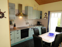 Barnvänlig semesteranläggning "Am Meer". 2 km från centrumet av Burhave, i utkanten, 12 km från centrumet av Tossens, 500 m från havet. För gemensamt bruk: boccia, barnlekplats. För privat bruk: tomt 300 m2, trädgård (inte inhängnad) med gräsmatta. I anläggningen: reception, centralvärme, tvättmaskin, torktumlare (för gemensamt bruk, extra). Parkering (täckt) vid huset. Stormarknad 2 km, sandstrand 700 m, grässtrand 500 m, simhall 2 km.Interior