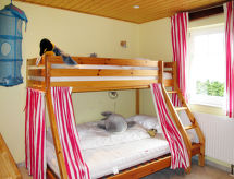 4-rums-hus 90 m2 med 2 våningar. Smakfullt och mysigt inrett: vardagsrum med braskamin, sat-TV, radio och DVD. Utgång till terrassen. 1 rum med 1 dubbelsäng. 1 rum med 2 sängar. 1 rum med 1 x 2 våningssängar. Öppet kök (ugn, diskmaskin, 4 kokplattor - glaskeramikhäll, vattenkokare, mikrovågsugn, elektrisk kaffemaskin) med matbord. Badkar/toalett, dusch/toalett. Övre våning: galleri med snedtak. Till förfogande: hög barnstol, barnsäng. Internet (Trådlös LAN [WLAN] , gratis). Notera: rökfri lägenhet. Max 1 husdjur/hund tillåtet. Brandvarnare.- Kännetecken för boendet