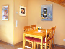 Barnvänlig semesteranläggning "Am Meer". 2 km från centrumet av Burhave, i utkanten, 12 km från centrumet av Tossens, 500 m från havet. För gemensamt bruk: boccia, barnlekplats. För privat bruk: tomt 300 m2, trädgård (inte inhängnad) med gräsmatta. Terrass, trädgårdsmöbler. I anläggningen: reception, centralvärme, tvättmaskin, torktumlare (för gemensamt bruk, extra). Parkering vid huset. Stormarknad 2 km, sandstrand 700 m, grässtrand 500 m, simhall 2 km.Interior