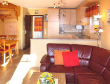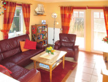 3-rums-ena hälften av ett parhus 50 m2 med 2 våningar. Smakfullt och mysigt inredd: vardagsrum med matbord, sat-TV och radio. Utgång till terrassen. Öppet kök (4 kokplattor, ugn, diskmaskin, vattenkokare, mikrovågsugn, elektrisk kaffemaskin). Sep. Toalett. Övre våning: 1 rum med 1 dubbelsäng. 1 rum med 1 säng och 1 utdragbar säng. Badkar/dusch/toalett. Förråd. Till förfogande: hög barnstol, barnsäng. Internet (Trådlös LAN [WLAN] , gratis). Notera: rökfri lägenhet. Max 1 husdjur/hund tillåtet. Brandvarnare.- Kännetecken för boendet
