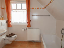 Barnvänlig semesteranläggning "Am Meer". 2 km från centrumet av Burhave, i utkanten, 12 km från centrumet av Tossens, 500 m från havet. För gemensamt bruk: boccia, barnlekplats. För privat bruk: tomt, välskött trädgård med gräsmatta. I anläggningen: reception, centralvärme, tvättmaskin (extra), torktumlare (för gemensamt bruk, extra). Parkering (för 2 bilar) vid huset. Stormarknad 2 km, sandstrand 700 m, grässtrand 500 m, simhall 2 km.Interior