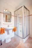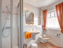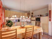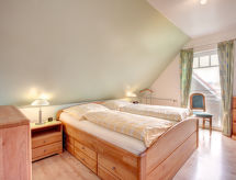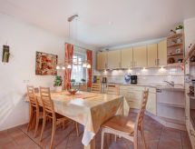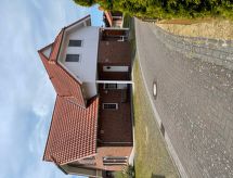 4-rums-ena hälften av ett parhus 90 m2 med 2 våningar. Mysigt inredd: vardagsrum med kabel-TV och radio. Utgång till terrassen. (ugn, diskmaskin, 4 kokplattor - glaskeramikhäll, elektrisk kaffemaskin) med matbord. Dusch/toalett, Bastu. Uppvärmning. Övre våning: 2 rum, till varje rum hör, 1 dubbelsäng. 1 rum med 1 säng och 1 x 1 våningssängar. Dusch/toalett. Terrassmöbler. Till förfogande: hög barnstol, barnsäng. Internet (Trådlös LAN [WLAN] , gratis). Notera: rökfri lägenhet. Brandvarnare.- Utrustning