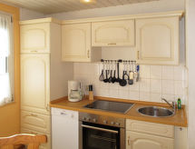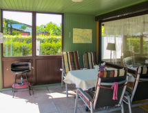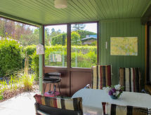 3-rums-hus 60 m2, på bottenvåningen. Praktiskt inrett: vardagsrum med braskamin, sat-TV, flatscreen TV och stereoanläggning. Genomgångsrum med 2 sängar. 1 rum med 2 sängar. Kök (ugn, diskmaskin, 4 kokplattor - glaskeramikhäll, brödrost, vattenkokare, elektrisk kaffemaskin) med matbord. Dusch/toalett. Eluppvärmning, gasuppvärmning. Terrass täckt. Terrassmöbler, utegrill (flyttbar). Till förfogande: ved (extra). Notera: rökfritt hus. Max 2 små husdjur/hundar tillåtna. Brandvarnare.- Utrustning