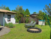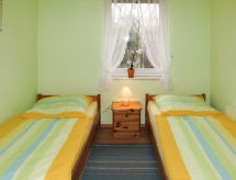 Stugby "Am Walde". 1 km från centrumet av Dobbertin, i utkanten, 200 m från sjön, 400 m från stranden, i det gröna. För privat bruk: tomt 250 m2 (inhägnad) med gräsmatta. Barnlekplats (gunga, sandlåda), parkering vid huset. Livsmedelsaffär 1 km, stormarknad 5 km, restaurang 800 m, bageri 1 km, café 1 km, grässtrand 400 m, simhall 30 km. Vandringsleder från huset 100 m.Interior