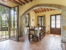 Vackert 2-familjshus "Amos", 200 meter över havsytan, omgiven av träd och fält. 6 km från centrumet av Montaione, 12 km från centrumet av San Miniato, 65 km från havet. För privat bruk: tomt 2'000 m2, trädgård i olika nivåer (inte inhängnad) med planteringar, äng, pool (8 x 4 m, 100 - 160 cm djup, tillgång säsongsbunden: 01.Maj. - 30.Okt.). Utedusch, berså, trädgårdsmöbler. 1.8 km lång gropig tillfart. Parkering vid huset. Affär 3.5 km, stormarknad 6 km, järnvägsstation "Castelfiorentino" 15 km, sandstrand "Tirrenia" 65 km. Golfbana (27 hål) 5 km.Interior