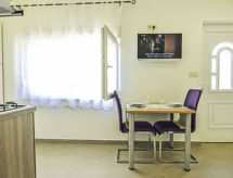 Ribnica 15 km från Novigrad: Bungalow "Ana". 7 km från centrumet av Obrovac, lugnt, soligt läge, direkt vid havet, 10 m från stranden, direkt tillgång till stranden. För gemensamt bruk: tomt 800 m2. Grillstuga. I huset: internetanslutning, tvättmaskin (för gemensamt bruk). Parkering vid huset på tomten. Affär 200 m, restaurang 50 m, betongbelagd strand 10 m. Notera: egen båtplats (extra) på förfrågan. Objektnummer HR4013.112 är beläget på samma tomt.Interior