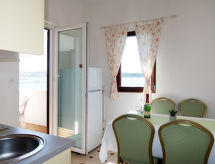 "Ana (RAB166)", 2-rums-lägenhet 50 m2 på 1. våningen. 1 rum med 1 dubbelsäng. 1 rum med 1 bäddsoffa, 1 dubbelsäng, sat-TV och luftkonditionering. Utgång till balkongen. Kombinerat kök och vardagsrum (2 kokplattor, brödrost, vattenkokare, mikrovågsugn, frys, elektrisk kaffemaskin) med matbord. Utgång till balkongen. Dusch/toalett. Balkong 9 m2. Balkongmöbler. Utsikt på havet. Till förfogande: Internet (Trådlös LAN [WLAN] , gratis). Max 2 husdjur/hundar tillåtna.- Utrustning