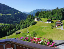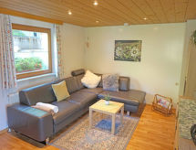 3-rums-lägenhet 75 m2 på 1. våningen. Komfortabelt och smakfullt inredd: stort vardags-/matrum 33 m2 med 1 utdragbar säng och sat-TV (flatscreen TV). Utgång till terrassen. 1 dubbelrum med handfat. Utgång till balkongen. 1 dubbelrum. Öppet kök (ugn, diskmaskin, 4 kokplattor - glaskeramikhäll, frys, elektrisk kaffemaskin, Kapslar till kaffemaskin (Cafissimo) extra) med radio och CD. Dusch/toalett. Balkong, sydläge, terrass 20 m2, sydläge. Terrassmöbler. Härlig panoramautsikt på bergen. Till förfogande: kassaskåp, hårtork. Internet (Trådlös LAN [WLAN] , extra). Notera: rökfri lägenhet. Brandvarnare. Lägenheten förfogar över en egen ingång.- Utrustning