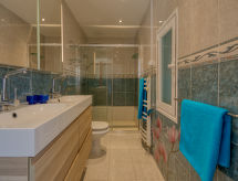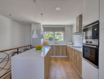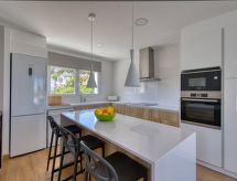 5-rums-hus 140 m2 med 2 våningar. Rymlig och ljus, vackert och smakfullt inrett: stort vardags-/matrum med braskamin, digital-TV, flatscreen TV och stereoanläggning. Utgång till trädgården, till swimmingpoolen. 1 rum med 2 sängar (90 cm, längd 180 cm), dusch/toalett och fläkt. Utgång till trädgården, till swimmingpoolen. 1 rum med 1 fransk säng (140 cm, längd 180 cm), fläkt. Badkar/toalett. Övre våning: matrum med luftkonditionering och varmluftsuppvärmning. 1 rum med 1 fransk säng (160 cm, längd 190 cm), TV och fläkt. Utgång till terrassen. Öppet kök (ugn, diskmaskin, 3 Induktionshäll, mikrovågsugn, frys, elektrisk kaffemaskin) med luftkonditionering och varmluftsuppvärmning. Dusch/toalett. Terrass täckt terrass 12 m2. Terrassmöbler, utegrill, vilstolar. Mycket vacker utsikt på havet, bergen och dalen. Till förfogande: tvättmaskin. Internet (Trådlös LAN [WLAN] , gratis). Parkeringsplats (täckt, inhägnad, 2 Bilar) vid huset. Notera: TV bara ES. AT-437739-A- Aktiviteter i närheten