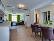 Modern semesteranläggning "Lagovida". 98 lägenheter i residenset. 5 km från centrumet av Espenhain, 10 km från centrumet av Großpösna, 25 km från centrumet av Leipzig, direkt vid sjön. För gemensamt bruk: bordtennis, strandvolleyboll, barnlekplats. I anläggningen: reception, restaurang, bar, kiosk, cykelförråd, tvättmaskin, torktumlare (för gemensamt bruk, extra), cykeluthyrning. Brödservice, frukost och halvpension möjligt (extra). Affär 10 km, stormarknad 4 km, sandstrand 100 m. Golfbana (9 hål) 10 km, minigolf 100 m.Interior
