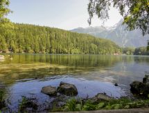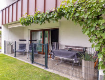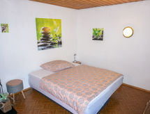 "Apart Eva", 2-rums-lägenhet 55 m2, bottenvåning. Objekt passande för 2 vuxna + 2 barn. Enkelt och praktiskt inredd: ingång. Vardags-/sovrum med 1 dubbelsäng, braskamin, matbord och sat-TV (flatscreen TV). Utgång till terrassen. 1 litet rum med 1 x 2 våningssängar. Litet, öppet kök (4 kokplattor - glaskeramikhäll, brödrost, vattenkokare, mikrovågsugn, elektrisk kaffemaskin). Badkar/toalett. Uppvärmning, veduppvärmning. Liten terrass. Terrassmöbler. Till förfogande: tvättmaskin. Internet (Trådlös LAN [WLAN] , gratis). Parkeringsplats vid huset. Notera: lämpligt för barnfamiljer. Rökfri lägenhet. Max 2 husdjur/hundar tillåtna. Privat entré, privat entré.- Utrustning