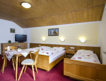 "Apart Maashof II", 3-rums-lägenhet 80 m2 på 2. våningen. Mysigt och med mycket trä inredd: 2 rum, till varje rum hör 1 säng, 1 dubbelsäng, dusch/toalett och sat-TV. Utgång till balkongen. Kombinerat kök och vardagsrum (ugn, diskmaskin, 4 kokplattor - glaskeramikhäll, brödrost, vattenkokare, elektrisk kaffemaskin) med matvrå. Uppvärmning. Parkettgolv, heltäckningsmatta. Balkong. Panoramautsikt. Till förfogande: hög barnstol, barnsäng. Internet (Trådlös LAN [WLAN] , gratis). Notera: 1 husdjur/hund tillåtet. Brandvarnare.- Utrustning
