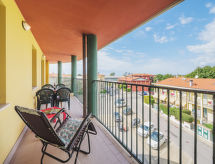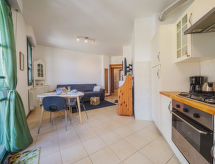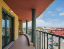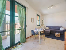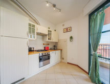 "Appartamento Pietrasanta", 2-rums-lägenhet 50 m2 på 3. våningen. Objekt passande för 3 vuxna + 2 barn. Mycket praktiskt och komfortabelt inredd: öppet vardags-/matrum med 1 bäddsoffa för 2 personer och TV (flatscreen TV). Utgång till balkongen. 1 stort rum med 1 säng, 1 dubbelsäng och luftkonditionering. Kokvrå (4 kokplattor, brödrost, mikrovågsugn, frys, elektrisk kaffemaskin) med matbord. Utgång till balkongen. Dusch/bidé/toalett. Gasuppvärmning, luftkonditionering. Stor balkong 10 m2. Till förfogande: strykjärn. Internet (Trådlös LAN [WLAN] , gratis).- Utrustning