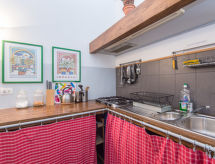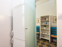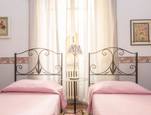 "Ara Pacis con terrazzo", 3-rums-lägenhet 100 m2 på 1. våningen. Mycket komfortabelt inredd: vardags-/matrum med 1 bäddsoffa för 2 personer och digital-TV. 1 dubbelrum. 1 rum med 2 sängar. Litet kök (4 kokplattor, ugn, diskmaskin, elektrisk kaffemaskin). Badkar/bidé/toalett, dusch/bidé/toalett. Uppvärmning, luftkonditionering. Stor terrass. Terrassmöbler. Till förfogande: tvättmaskin, strykjärn, hårtork. Internet (Trådlös LAN [WLAN] , gratis). Notera: rökfri lägenhet. 1 husdjur/hund tillåtet.- Kännetecken för boendet