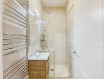 Hus "Artienea", med 3 våningar. I ortsdelen du Lac, 550 m från havet, 550 m från stranden. Allmän parkering på gatan. Affär 900 m, livsmedelsaffär 140 m, stormarknad 1 km, köpcentrum 3.5 km, restaurang 120 m, bar 800 m, bageri 140 m, café 400 m, cykeluthyrning 950 m, …minuts promenad till centrum 10, busshållplats "Paul Gelos" 140 m, järnvägsstation "Gare de Saint Jean de Luz" 1.6 km, sandstrand "Grande Plage" 550 m. Sporthamn 1.5 km, golfbana (18 hål) 3 km, surfskola 550 m. Närbelägna sevärdheter: Parc Duconténia 1 km, Pointe Sainte Barbe 1 km, Maison Louis XIV 1.4 km. Vandringsområden La Rhune 13 km. Notera: Hiss saknas.Interior