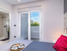 4-rums-villa 160 m2 med 2 våningar, sydvästläge. Vackert och smakfullt inredd: vardags-/matrum 80 m2 med kabel-TV och internationella TV-kanaler (flatscreen TV), luftkonditionering. Utgång till terrassen, till swimmingpoolen. Öppet kök (ugn, diskmaskin, 4 Induktionshäll, brödrost, vattenkokare, mikrovågsugn, frys, elektrisk kaffemaskin, köksö). Sep. Toalett. Övre våning: 2 rum 15 m2, till varje rum hör, 1 fransk säng (180 cm, längd 200 cm), dusch/toalett och TV (flatscreen TV), luftkonditionering. Utgång till balkongen. 1 rum 15 m2 med 1 fransk säng (140 cm, längd 190 cm), dusch/toalett och luftkonditionering. Utgång till balkongen. Golvvärme, varmluftsuppvärmning. 3 balkonger 6 m2, terrass 16 m2 täckt. Terrassmöbler, vilstolar, förråd. Vacker utsikt på havet och landskapet. Till förfogande: kassaskåp, strykjärn, hög barnstol, barnsäng. Internet (Trådlös LAN [WLAN] , gratis). Notera: rökfritt hus. Brandsläckare.- Utrustning