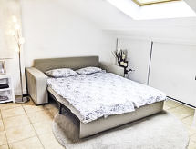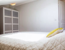3-rums-lägenhet 72 m2 på 2. våningen. Rymlig och ljus, komfortabelt och vackert inredd: vardagsrum med 1 bäddsoffa för 2 personer (1 x 140 cm, längd 190 cm), TV och flatscreen TV. Utgång till balkongen. 1 rum med snedtak med 1 fransk säng (1 x 180 cm, längd 200 cm). Utgång till balkongen. 1 rum med snedtak med 1 fransk säng (1 x 160 cm, längd 200 cm). Öppet kök (4 kokplattor - glaskeramikhäll, mikrovågsugn, frys, elektrisk kaffemaskin, Kapslar till kaffemaskin (senseo) extra). Utgång till terrassen. Dusch, sep. Toalett. Eluppvärmning. Balkong 8 m2, sydostläge. Balkongmöbler. På trädgården. Till förfogande: tvättmaskin, strykjärn, hårtork. Internet (Trådlös LAN [WLAN] , gratis). Parkeringsplats nr B21 (2 Bilar). Notera: rökfri lägenhet. Brandvarnare. 641250010572D- Utrustning