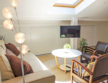 Bidart: Flerfamiljshus "Atlantique", med 2 våningar. I ortsdelen Parlementia, 200 m från havet, 200 m från stranden. I huset: cykelförråd. Parkering (för 2 bilar) på tomten. Livsmedelsaffär 2 km, köpcentrum 3 km, restaurang, bar 400 m, bageri 1.7 km, café 400 m, …minuts promenad till centrum 5, järnvägsstation "Guethary" 2.5 km, sandstrand "Uhabia" 200 m, stenstrand "Parlementia" 250 m. Sporthamn 7 km, golfbana (18 hål) 9 km, surfskola 250 m. Närbelägna sevärdheter: Bidaparc 600 m, Centre de Guethary 2 km. Vandringsområden La Rhune 15 km. Notera: Hiss saknas. Nyckelöverlämningen sker på kontoret Interhome i Bidart.Interior