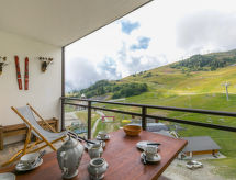 3-rums-lägenhet 35 m2 på 9. våningen, sydläge. Vackert och mysigt inredd: vardags-/matrum med TV (flatscreen TV), elektrisk fönsterlucka. Utgång till balkongen, mot söder. 1 litet rum med skjutdörr, utan fönster med 1 fransk säng (140 cm, längd 190 cm). 1 litet rum med 1 x 2 våningssängar (80 cm, längd 190 cm), elektrisk fönsterlucka. Utgång till balkongen, mot söder. Kokvrå (diskmaskin, 2 kokplattor - glaskeramikhäll, brödrost, vattenkokare, frys, elektrisk kaffemaskin, Kapslar till kaffemaskin (Nespresso) extra, raclettegrill, kombinerad mikrovågsugn, fondueset (ost )) med bar. Badkar, sep. Toalett. Eluppvärmning. Parkettgolv. Balkong 17 m2, sydläge. Balkongmöbler, vilstolar (1). Utsikt på skidbackarna. Till förfogande: tvättmaskin, strykjärn. Internet (Trådlös LAN [WLAN] , extra). Notera: rökfri lägenhet. Brandvarnare. Annonsering av en privatperson enligt artikel 155, IV, CGI.- Utrustning
