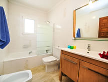 "Casa Baladrar", 3-rums-hus 126 m2. Komfortabelt och smakfullt inrett: vardags-/matrum 35 m2 med öppen spis, sat-TV och flatscreen TV. Utgång till verandan. 1 dubbelrum med badkar/bidé/toalett, luftkonditionering och varmluftsuppvärmning. 1 rum med 2 sängar, dusch/toalett, luftkonditionering och varmluftsuppvärmning. Utgång till balkongen. Öppet kök (ugn, diskmaskin, 4 Induktionshäll, mikrovågsugn). Sep. Toalett. Uppvärmning. Terrassmöbler, utegrill, vilstolar. Till förfogande: tvättmaskin, hög barnstol, barnsäng för barn under 2 år, hårtork. Internet (Trådlös LAN [WLAN] , gratis). Parkeringsplats vid huset. AT-432018-A- Aktiviteter i närheten