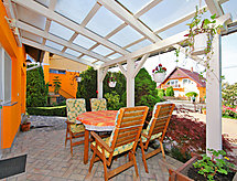 Balatonszárszó: Mysigt hus "Orange", med 2 våningar. I orten, lugnt läge, 900 m från sjön. För gemensamt bruk: trädgård 400 m2 (inhägnad) med planteringar och blommor. Utedusch, bordtennis, pergola (10 m2), utegrill. I huset: Trådlös LAN [WLAN], luftkonditionering (extra), Uppvärmning betalas lokalt. Livsmedelsaffär, restaurang 300 m, busshållplats 500 m, järnvägsstation 800 m, grässtrand 900 m. Ridstall 1.5 km. Notera: ägaren bor på samma tomt.Interior