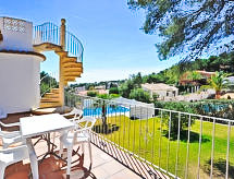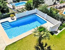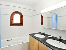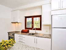 3-rums-hus 87 m2. Stort vardags-/matrum med 1 bäddsoffa och sat-TV (flatscreen TV), radio, DVD och luftkonditionering. Utgång till terrassen. 2 dubbelrum. Öppet kök (ugn, diskmaskin, 4 kokplattor - glaskeramikhäll, mikrovågsugn). Badkar/toalett. Ingen uppvärmningsmöjlighet. Terrassmöbler, utegrill, vilstolar. Utsikt på havet. Till förfogande: tvättmaskin. Garage (2 Bilar) vid huset. Notera: rökfri lägenhet. TV bara ES, EN, DE. AT-415840-A- Utrustning