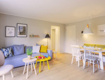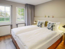 "Leuchtturm", 3-rums-lägenhet 62 m2 med 2 våningar. Objekt passande för 2 vuxna + 4 barn. Smakfullt inredd: övre våning: (utetrappa) vardags-/matrum med 1 bäddsoffa för 2 personer (160 cm, längd 190 cm), braskamin och sat-TV (flatscreen TV). Utgång till balkongen. Kokvrå (4 kokplattor, ugn, diskmaskin, brödrost, vattenkokare, mikrovågsugn, elektrisk kaffemaskin). Dusch/toalett. Uppvärmning. 2:a våningen 1 dubbelrum. 1 rum med 1 x 2 våningssängar. Balkong eller terrass. Terrassmöbler, balkongmöbler. Till förfogande: kassaskåp, hög barnstol, barnsäng, hårtork, ved (extra). Internet (Trådlös LAN [WLAN] , gratis). Notera: rökfri lägenhet. Brandvarnare, brandsläckare. På grund av coronaviruset (COVID-19) vidtas i detta boende åtgärder för att garantera säkerheten för gäster och personal. Därför kan vissa tjänster och faciliteter vara begränsade eller inte alls tillgängliga.- Utrustning