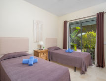 "Benatalaya", 3-rums-lägenhet 100 m2, sydvästläge. Objekt passande för 4 vuxna. Ljus, vackert och modernt inredd: vardags-/matrum med sat-TV och digital-TV. Utgång till trädgårdssittplatsen. 1 rum med 2 sängar (90 cm). 1 rum med 1 fransk säng (160 cm), badkar/dusch/toalett. Kök (4 kokplattor, ugn, diskmaskin, mikrovågsugn, frys). Badkar/bidé/toalett. Terrass 10 m2, täckt. Terrassmöbler. Till förfogande: tvättmaskin, torktumlare, strykjärn, hög barnstol, barnsäng, hårtork. Internet (Trådlös LAN [WLAN] , gratis). Garage nr 2. Notera: rökfri lägenhet. VFT/MA/28254- Kännetecken för boendet