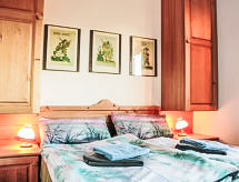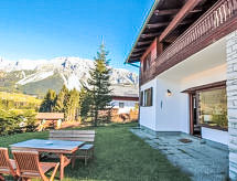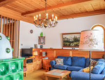 5-rums-hus 150 m2 med 2 våningar. Objekt passande för 6 vuxna + 2 barn. Enkelt och mysigt inrett: ingång. Stort vardags-/matrum med öppen spis, matvrå och TV. Utgång till terrassen. 1 rum med 1 fransk säng (160 cm), dusch/toalett. Kök (ugn, diskmaskin, 4 kokplattor - glaskeramikhäll, frys, elektrisk kaffemaskin). Sep. Toalett. Övre våning: 1 rum med 1 fransk säng (160 cm), handfat. 1 rum med 1 fransk säng (160 cm). 1 barnrum med 1 x 2 våningssängar, handfat. Badkar/dusch/toalett, Bastu. Stor balkong. Balkongmöbler. Mycket vacker utsikt på bergen och skidbackarna. Till förfogande: hög barnstol, barnsäng för barn under 3 år, hårtork. Internet (Trådlös LAN [WLAN] ). Notera: rökfri lägenhet. Max 2 husdjur/hundar tillåtna.- Utrustning