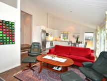 "Bexet (HAL053)", 3-rums-hus 80 m2. Ljus, vackert inrett: vardags-/matrum med braskamin, matbord och TV. Utgång till terrassen. 1 rum med 1 säng (90 cm, längd 200 cm), 1 dubbelsäng (180 cm, längd 200 cm). 1 rum med 2 sängar (90 cm, längd 200 cm). Öppet kök (ugn, diskmaskin, 4 kokplattor - glaskeramikhäll, mikrovågsugn, frys, elektrisk kaffemaskin). Dusch/toalett. Eluppvärmning. Terrassmöbler, utegrill (flyttbar). Utsikt på sjön. Till förfogande: tvättmaskin, hög barnstol, barnsäng. Notera: rökfritt hus. Max 1 husdjur/hund tillåtet.- Utrustning