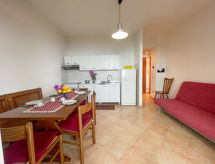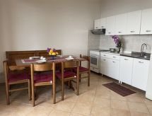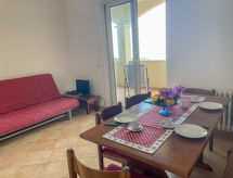 "Bianca (PTL200)", 2-rums-lägenhet 58 m2, på bottenvåningen över marknivå. Ljus, praktiskt inredd: vardags-/sovrum med 1 bäddsoffa för 2 personer (140 cm), matbord och sat-TV. Utgång till terrassen. 1 rum med 1 säng (80 cm), 1 dubbelsäng (160 cm). Utgång till terrassen. Öppet kök (ugn, 4 gasflammor, brödrost, vattenkokare, frys, elektrisk kaffemaskin). Dusch/bidé/toalett. Gasuppvärmning. Terrass 30 m2, täckt. Terrassmöbler. Härlig panoramautsikt på havet, orten och viken. Till förfogande: tvättmaskin, hög barnstol, barnsäng. Internet (Trådlös LAN [WLAN] , gratis). Parkeringsplats (1 Bil). Notera: max 1 husdjur/hund tillåtet. Privat entré, privat entré. CITRA: 009049-LT-0650- Utrustning