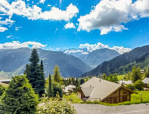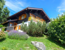 "Biquinou", 5-rums-chalet 110 m2 med 2 våningar. Rymlig och ljus, komfortabelt och vackert inrett: stort vardags-/matrum med öppen spis, kabel-TV och DVD. Utgång till terrassen. Stort kokvrå (ugn, diskmaskin, 4 kokplattor - glaskeramikhäll, brödrost, vattenkokare, mikrovågsugn, elektrisk kaffemaskin, Kapslar till kaffemaskin (Nespresso) extra, raclettegrill, fondueset (ost )). Dusch/toalett. Övre våning: 1 stort rum med 1 dubbelsäng (2 x 90 cm, längd 190 cm). 1 stort rum med 1 x 2 våningssängar (90 cm, längd 190 cm). 1 litet rum med 1 x 2 våningssängar (90 cm, längd 190 cm). 1 rum med 1 fransk säng (1 x 140 cm, längd 190 cm). Utgång till balkongen. Badkar. Stor terrass. Terrassmöbler, utegrill, vilstolar, förråd. Panoramautsikt på bergen och orten. Till förfogande: tvättmaskin, hårtork. Internet (Trådlös LAN [WLAN] , gratis). Parkeringsplats (2 Bilar). Notera: rökfri lägenhet.- Kännetecken för boendet