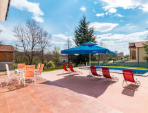 Enfamiljshus "Blanka", med 2 våningar. I den lilla byn Trošti 5 km från centrumet av Pazin, 10 km från centrumet av Žminj, 24 km från havet. För privat bruk: tomt 2'200 m2 (inhägnad), träd, äng, pool kantig (8 x 4 m, 150 cm djup, tillgång säsongsbunden: 27.Mar. - 05.Nov.). Utedusch, terrass, trädgårdsmöbler, utegrill (gunga). I huset: internetanslutning, tvättmaskin. Parkering (för 5 bilar) på tomten. Affär 3 km, grusstrand 24 km.Interior