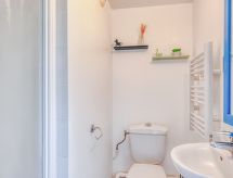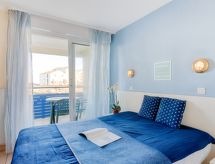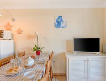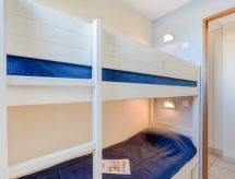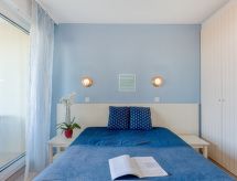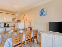 3-rums-lägenhet 36 m2 på 1. våningen. Objekt passande för 2 vuxna + 2 barn. Komfortabelt inredd: vardags-/matrum med TV (flatscreen TV). Utgång till terrassen. 1 rum med 1 fransk säng (140 cm, längd 190 cm), TV (flatscreen TV). Utgång till terrassen. 1 barnrum med 1 x 2 våningssängar (80 cm, längd 190 cm). Öppet kök (miniugn, diskmaskin, vattenkokare, mikrovågsugn, frys, elektrisk kaffemaskin) med matbord. Badkar, dusch/toalett. Eluppvärmning. Terrass 7 m2. Terrassmöbler. Vacker utsikt på havet. Till förfogande: hårtork. Internet (Trådlös LAN [WLAN] , extra). Parkeringsplats. Notera: brandvarnare.- Kännetecken för boendet